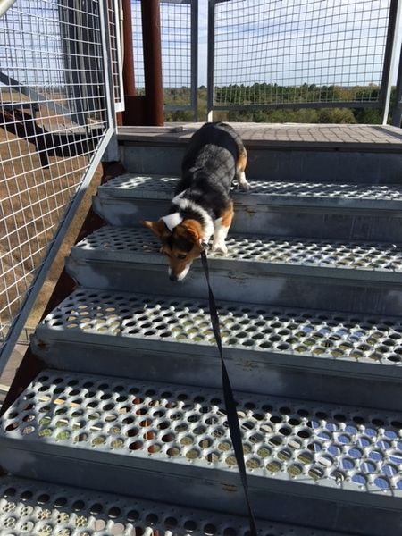 展望台に登って、湖を満喫。下りの階段をこわごわ降りる犬。抱っこしなくても自分で歩けるようになって(嬉泣)