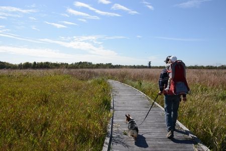 友人と出かける予定のキャンプで慣れないトレッキングシューズや背負子を背負って歩けるように~と、隙あらば近場の州立公園にお散歩にでかける我が家。犬も車でも寛ぐようになって、娘は背負子に慣れて、だんだんと適応してきたかな。我が家の場合は、途中休憩してお茶やお菓子をつまみつつ、だいたい1時間半から2時間かけてのんびり回れるようなコースがちょうどよいようです。今週末は、Sheldom Lake州立公園に行ってみました。まだ雨の影響が残っているのか、Lake手前でトレイルは通行止めに。