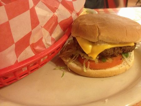 お腹が空いたところで、地元で有名だそうなハンバーガー屋さんへ。もう13時も過ぎていたのに、20分待ちという人気店。店員さんはみんな思い思いの犬の帽子をかぶっていました。わたしはチーズバーガーを(↓)。パテに脂肪が少ないみたいで、むな焼けがしない!おいし~!!