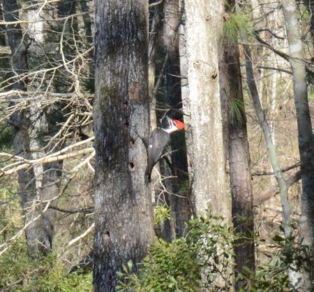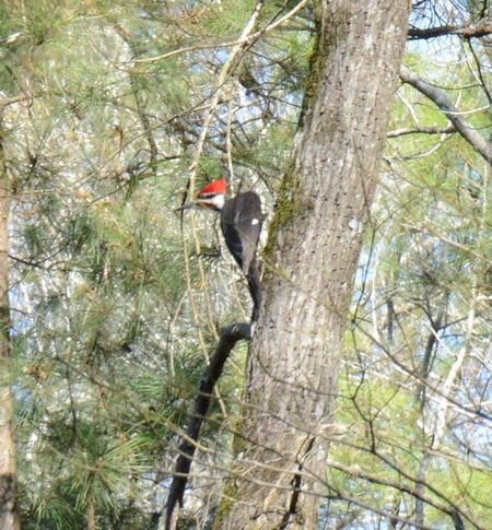 途中、キツツキのドラミング音がしたのできょろきょろすると、Pileated woodpeckerがいました~!日本のクマゲラのでっかいのみたいなキツツキ。頭の赤さと、頭の動かし方がちょっと奇妙な鳥でした。アメリカで最大のキツツキのようですね。和名は分かりませんが、クマゲラ属のようでした。もうひとつの名物なのかな、ハクトウワシは姿をみれませんでした。いつか!