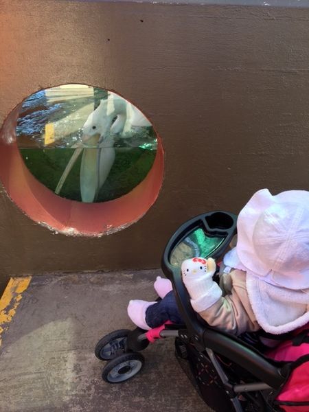 娘が楽しんでいたのは、クマのほかに、水にもぐって口をあけているペリカン、キリンでなく手前のダチョウ、クラゲ、タマリン、ミーアキャット、鳥、でっかくて泳いでいる魚あたりでした。