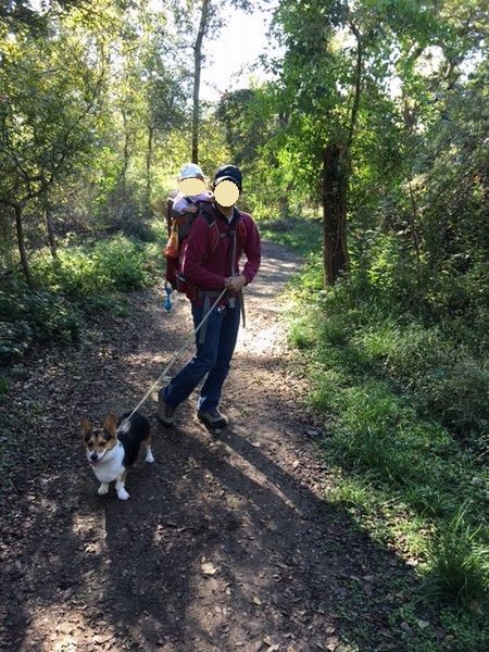 犬も娘も絶好調で、特に娘は背負子のなかで、「ばぁばぁ・・」などと大きな声でお喋りしては、空や木や鳥なんかを眺めていました。次にいくときは、Brazos川沿いのトレイルが開いているといいなぁ。