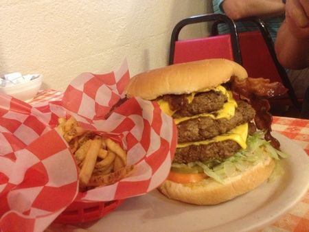 そして、夫は名物の1ポンドバーガー(↓)。なんとパテ3枚☆もっと驚いたことに完食しましたよ~~~!!さっぱり効果かしら。さすがにこの夜は夕ご飯なしでした。楽しい旅でした。