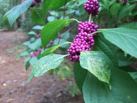 お次は運動。林のなかのトレイルへゴー。トレイル沿いは、ムラサキシキブの仲間ばっかし生えてました(↓)。