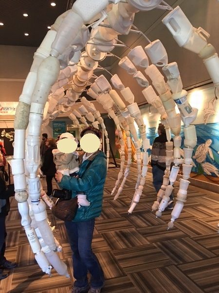 最後に、一番良いと思ったのは、海に捨てられたプラスティックで作ったアート作品の展示施設。一見、素敵だけど、こんな色とりどり、大きさのプラスティックが海に流されて、野生動物が誤飲したりしているわけで。娘がこういうのが分かるお年頃になったら再度訪れたいです。