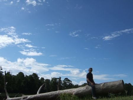 そこで、大人げなく子供用のとかげ遊具やブランコに乗って遊んだ後、倒木で記念写真でもと思ったとき(↓)夫がアリに襲撃されました。そそくさと撤退。ファイヤーアンツではなかったみたいで、思ったほど腫れなくてよかった。虫にはほんとご用心だな><