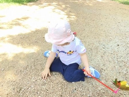 お散歩大好きな娘は、けっこうなアップダウンのあるなかぐんぐん歩きます。今日の散歩のお伴は風車~。きらきら星のおうたをうたうときは、風車を地面に置いて、両腕を使って踊り始めます(笑)かわいい♡