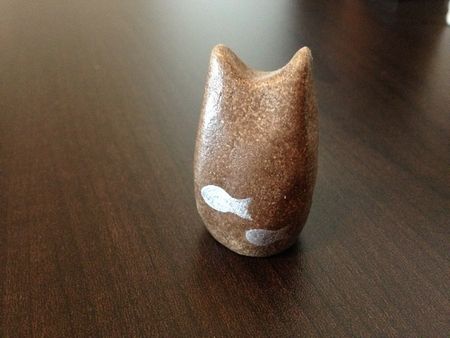 これがネコ展で買ってきた小石の作品(↑)。最初、たまたまこんな小石があったのかなとも思ったけど、いくつか同じ作品が並んでたから、頑張ってネコ耳を削ったのかな~。この子がいちばんぷっくりして可愛かった(^-^) そのドラマも今週最終回、楽しみだ。