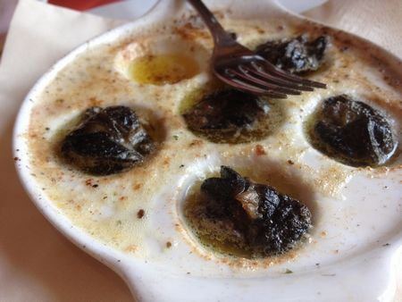 そして、人生初のエスカルゴ(↓)。おそるおそる食べると・・・それはバターの味でした。