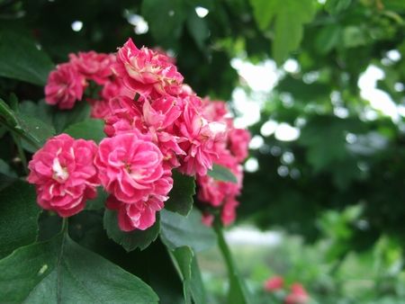 こちらは、庭木なのかな。民家付近でよくみかけました。ミニチュアのバラみたいな形の花で、鮮やかな色が目を惹きました(↓)。手のひらサイズのバラの花束みたいでした♪