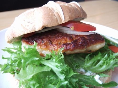 水族館でお魚バーガー(↓)。すごいおっさんみたいな魚のミンチだそうです。シュール^^;でも、美味しかった。
