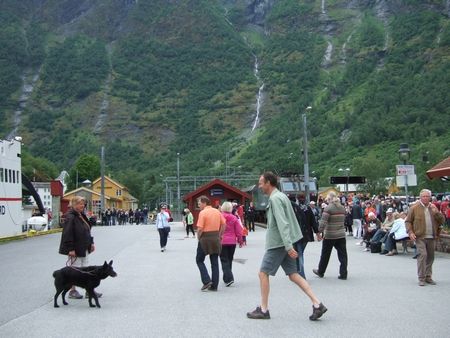 ホームから徒歩100 mも歩けばフェリーに乗りこめちゃいます(↓)。フェリーからのフロムの眺め。ソフティスを食べながら^^