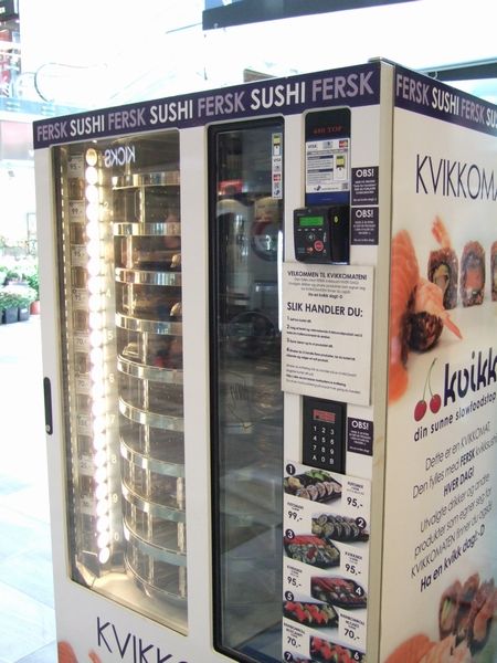 最後は、残念ながらありつけなかったけど、興味深々のお寿司の自動販売機(↓)。1の巻きずしおよそ1500円!どすこいなお値段ですな。美味しいお寿司を出せる人は世界中どこにいっても生きていけそうですな。