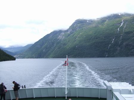 次に訪れたのは、ソグネフィヨルドより北にあるガイランゲルフィヨルド(Geirangerfjold)です。もしやフィヨルドなんてどこも同じ?と嫌な予感をしながら向かったのですが・・・。Hellesyltの港からGeiranger行きのフェリーに乗り込みます(↓)