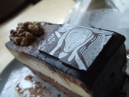 こちらは、ムンク美術館のカフェにて(↓)。他の店で食べたケーキがとっても固くてびっくりしたので今度も・・と期待しないで食べたのもあるのか、美味しかったです。