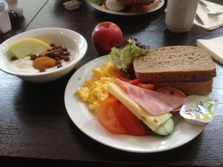 ちなみに、ホテルでは朝ごはん(↓例:ある日の朝ごはん)がついてるので、この間は1日2食で(夫は出張先でもお昼が出るという幸せ地獄(笑))、昼間はせっせと街でウォーキングを楽しみつつ、お腹をすかせようとしていたのでした^^