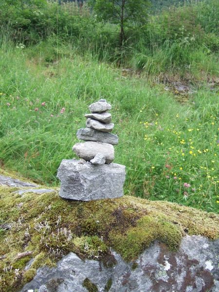 その道中に、こんな石積みが(↓)。人は、そこに石があるとついつい積んじゃうのでしょうか???日本人だけの習性かと思ってました^^