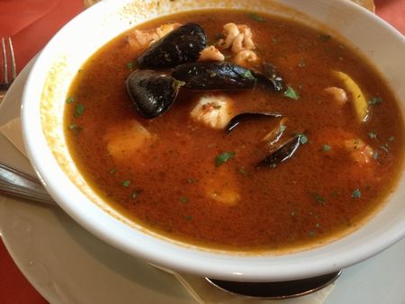 とまぁ、こんな素敵な事態が3日間も続き、最終日は少しカジュアルなイタリアンレストランに行って、肩の荷が下りた気分・・・と思いきや、お魚スープ(↓)。ん~、出汁がおいしい!!