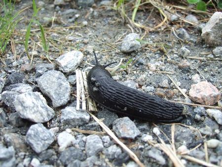 こちらは、衝撃的だったなめくじショットを(↓)。黒い!でかい(わたしの人差し指くらいあります)!気持ち悪い~><!なんで黒いんだろう??太陽の熱をもらうため??なめくじ様、あなたに罪はありませぬ。
