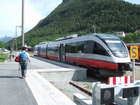 電車の乗り継ぎは、できれば余裕をもってスケジュールした方がよさそうです。わたしたちの場合は、放牧してるひつじが線路に出てきちゃって電車が止まったり(アナウンスが流れてみんなから笑いが起こりました^^)、30分以上遅れて来たり・・ということがありました。また、特に発車のベルなどはないので、発車時刻になったら車内にいることをお勧めします。なお、改札はなく車内で車掌さんが回ってきます。どの鉄道もスーツケースが置けるスペースがありました。