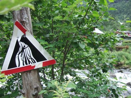 今日はノルウェーでみた看板をいくつか。まずは横断歩道を渡りましょうの標識(↓)。この標識には2パターンありまして、こちらはダンディーな方が登場してました。ハットとこの指先の角度がなんともいえず粋でした^^