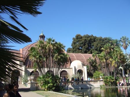 ダウンタウンからトローリーとバスを乗り継いで、バルボア公園に向かいました。公園内には動物園や博物館などがあって、けっこう広い。中心部には、長い回廊のある建物があって(↓)、異国情緒ただようような雰囲気でした。