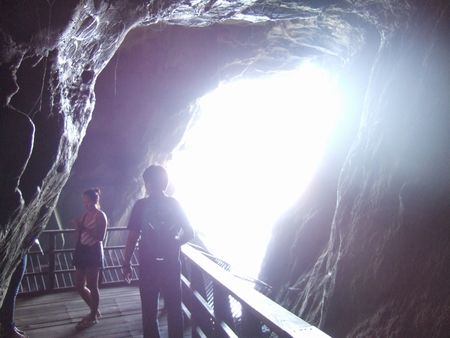 上の写真の洞窟の中あたりに入れるというので、La Jolla Caveに入場してみました。階段を下ること150段ほどでデッキにでました。そこから岸壁が人の横顔みたいな形に穴があいています。・・・それでおしまい。これにはちょっとがっくし~(←何を期待していたんだ(笑))。