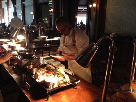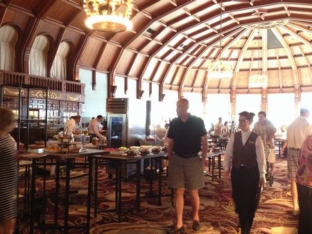 ここでの目的はSunday buffetでした。ちょうど、結婚記念日だったので、ちと奮発です。人気なようで、何ページもの予約表がありました。部屋は雰囲気があります(↓)。