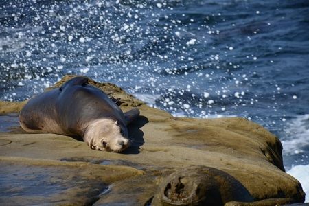 サンディエゴダウンタウンから、トローリーとバスを乗り継ぎ1時間ほど北上したところに、ラホヤ海岸があります。ちょっとしたリゾート地といった雰囲気。海水浴場自体は、割とこじんまりしていました。