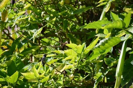 そして、植物園の出口脇の木にハチドリ(sp)を発見!枝の先に右向きで止まっているの見えますかね。ついに見れたと、また感動でした。