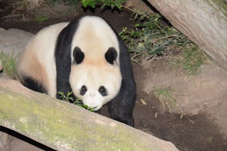 おかげで、夜に動いてるパンダもみることが出来て、大満足でした。案外、目がするどい(↓)。ちなみに、夜になると、動く動物もいれば、どこかに潜んで姿が見えなくなる動物もいて、全部みたい!という人は入園時間の工夫が必要そう。
