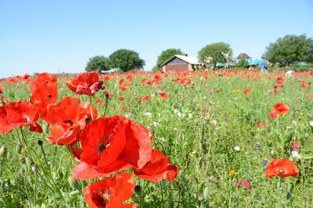 ポピー畑。お花畑の美しさを写真に収めるにはと夫婦していろいろ苦戦したものの、今回撮った風景写真のなかではこれが一番まとも!?でした(あくまで私の主観)。
