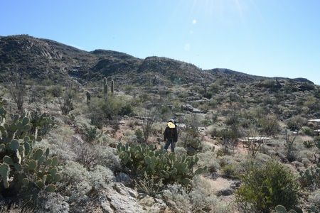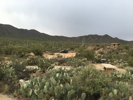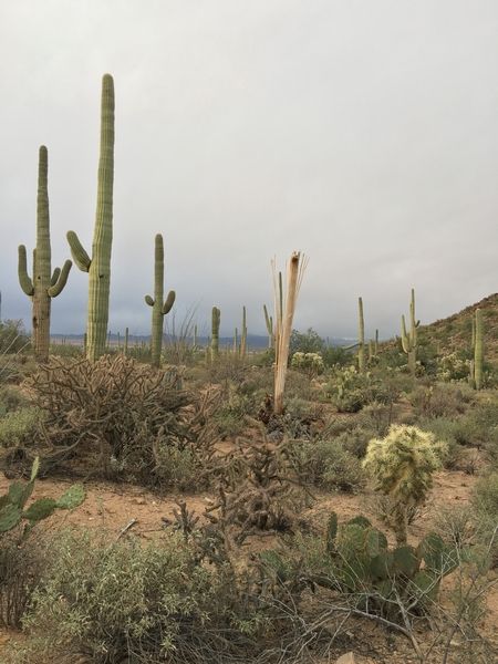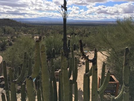 曇り。この日は、Saguaro National Park (Tucson Mountain District (西側))へ。途中の峠(これがTucson Mountainsなのかな??)からの国立公園側の景色。走行中なので、写真ではいまひとつ分かりませんが、たくさんのサボテンがHBえんぴつに見えてくると夫が言っていました。