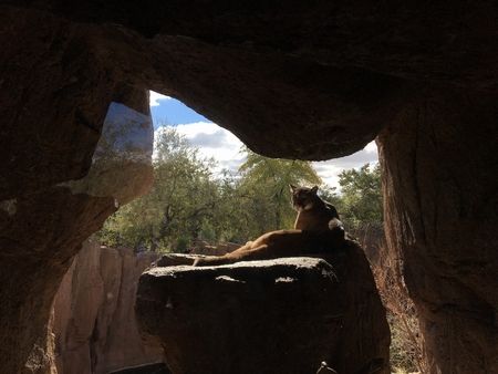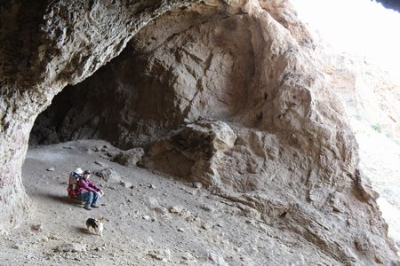 洞窟からの景色は、写真では伝わらないですね。美しかった~。私のなかで三蔵法師系の景観(笑)。下りのときの犬のスピードの速いこと!夫に先に歩いてもらって、犬のスピードを抑えて歩きました。だいたい5,500 ft(1,676m)くらいまであがったみたいです。