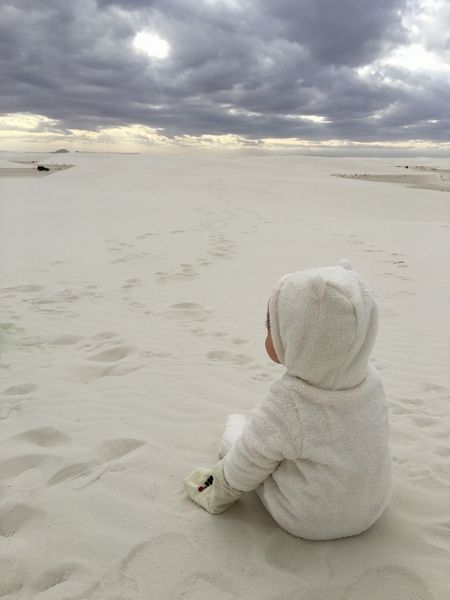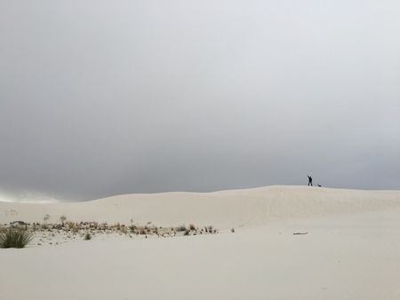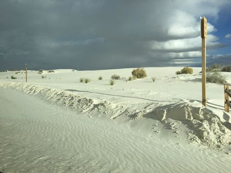 ついにテキサスを抜けだし、ニューメキシコに入りました。ここでは、夫が好きなB'zのボーカルさんがジャケ写に撮影に来たというWhite Sands National Monumentに寄ってみました。天気予報でウインターストームが来ると言っていたので、朝早起きして、いそいでお握りを握って出発。晴れ間のあるうちに滑り込みセーフです。