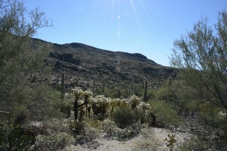 (手前のもじゃもじゃ)とSaguaro Cactus(奥の柱サボテン)。