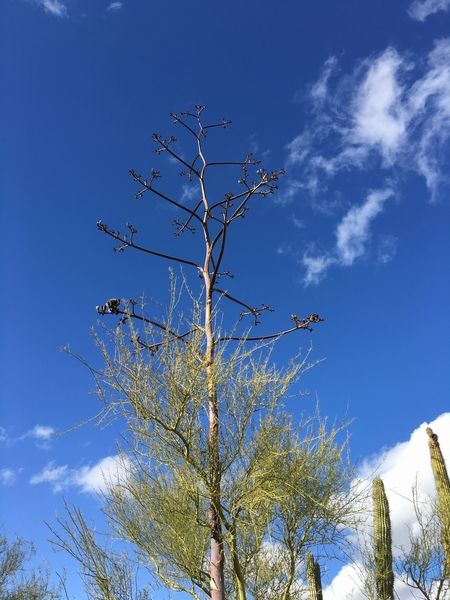 アガベと、夫の気に入った枝も幹も若緑色の木 Foothill Palo Verdeのコラボ。