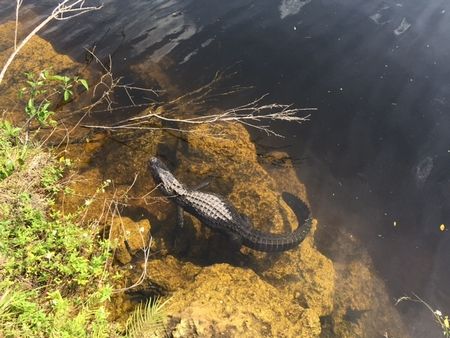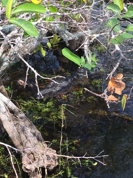 ちょっと覗いただけで、すぐにアリゲーターが。アリゲーターは口を横からみたときに、笑っているように見えるところが、クロコダイルとの識別のポイントだとか。