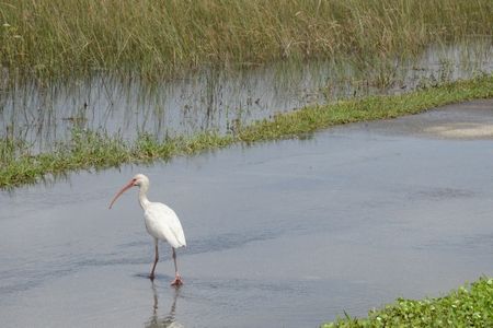 バスの近くにいたシロトキWhite Ibis。盛んに水辺をつついて何か食べ物を探しているか食べているようでした。