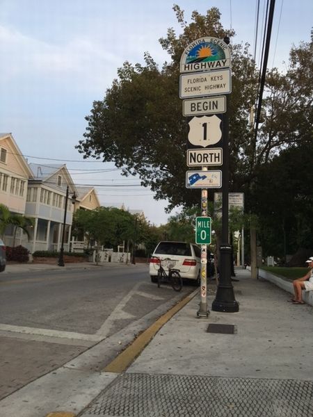 1号線の、道路を渡った両側にそれぞれ立っている、はじまり(BEGIN)と終わり(END)の0マイル標識を堪能。
