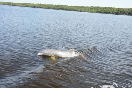 運河を抜けて、クックベイに出ると、二頭のイルカBottlenosed Dolphinがお出迎え。しばらくボートに並走してくれました。おかげで娘も気がつき、指さしていたそうです。よかった。