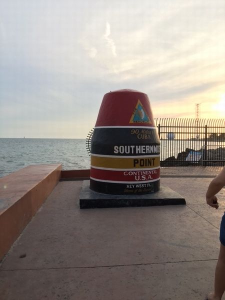 途中、シカがいるあたりを散策しようと思ったんだけど、地図がアバウトすぎたためその施設がみつからず。こんな湿地(汽水域という方がいいのか??)シカが住んでいるんだ~と感心しながら景色を堪能していました。夕方、終点のキーウエストに到着。本土最南端のモニュメントにでかけました。ど~んと。海ではペリカンがハンティングをしていました。