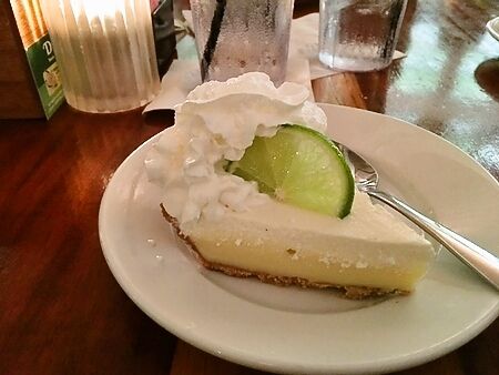 やはりキーウエストは観光地ですね。ニューオーリンズとまではいかないまでも、このビーチのあるあたりは繁華街でみんながお酒を飲み歩いているというような印象でした。我々は娘もいたので、もう少し閑静なところにあるレストランDuffy'sで夕食。サービスで頂いたキーライムパイがとっても美味しかったです。これまで食べたことのあるねっとり重たい感じじゃなくて、クラスとも薄くサクッとしていて好きでした。